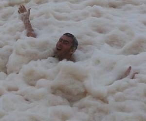 Из-за штормовой погоды прибрежную полосу штата Квинсленда заволокло пеной, принесенной сильным ветром с океана. В небольшом городке Мулулаба на улицах образовались целые "сугробы" в человеческий рост. Плотная белая пена лежит не только на пляже Мулулаба, но и на прилегающих к пляжу улицах.