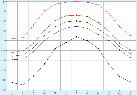 | январь | -43.0 (1940) | -19.6 | -15.7 | -11.9 | 2.0 (1976) |