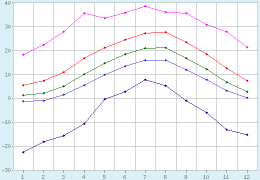 | год | -22.5 (1950) | 6.9 | 11.0 | 16.9 | 38.5 (2017) |