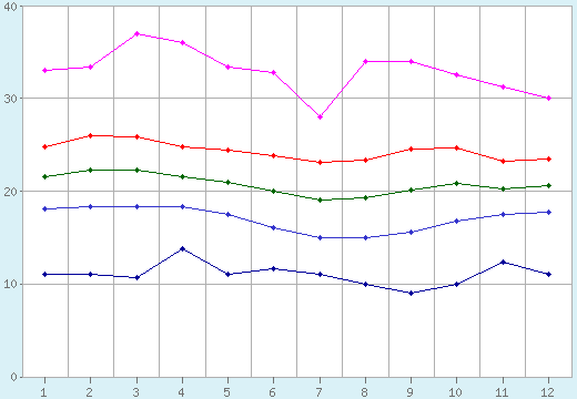 | декабрь | 11.0 (1978) | 17.7 | 20.6 | 23.5 | 30.0 (1975) |
