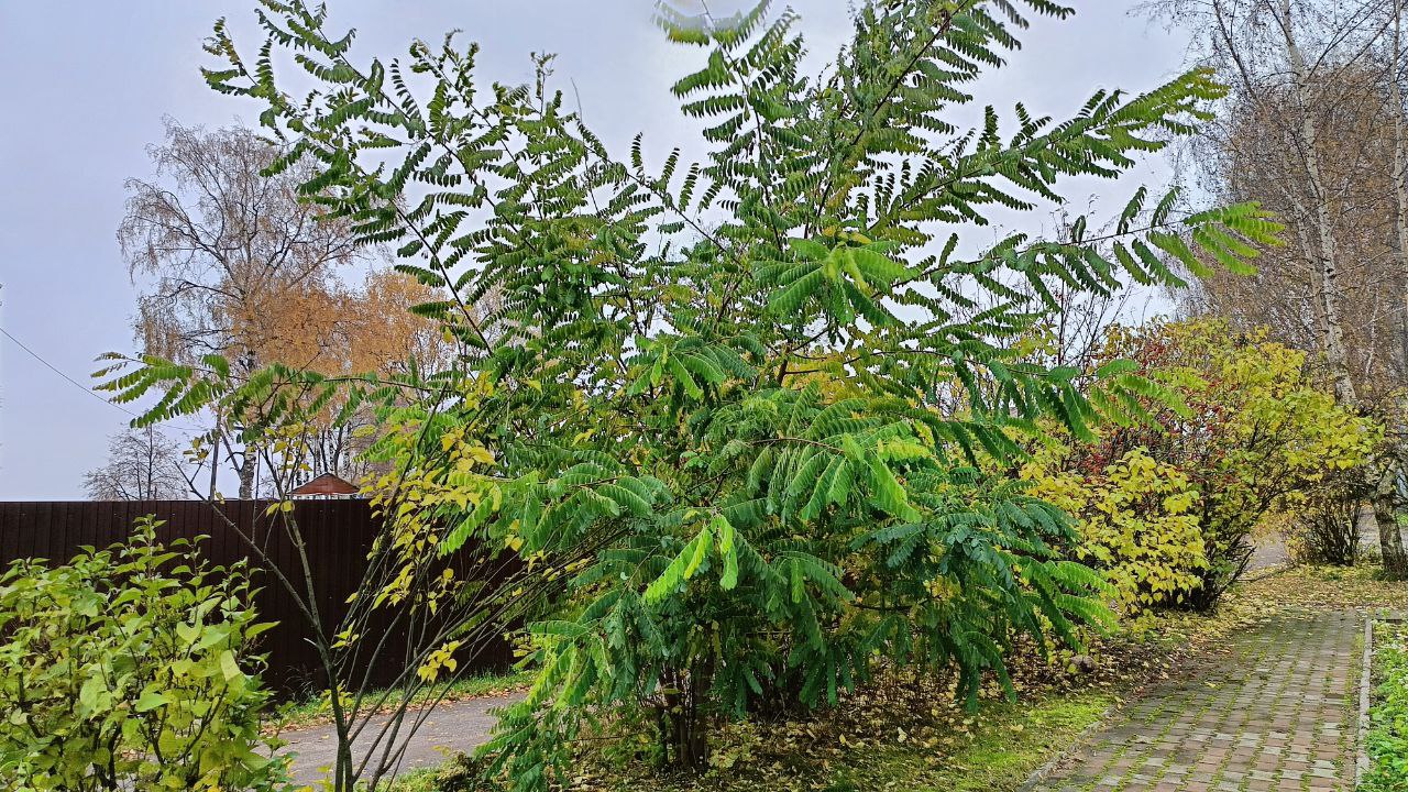 Неожиданно хорошо сохранившаяся зеленеющая акация в Ипатьевской слободе 24 октября.