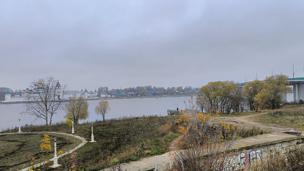 Третья декада октября, западная часть Костромы, устье реки Костромка с видом на Ипатьевский монастырь.