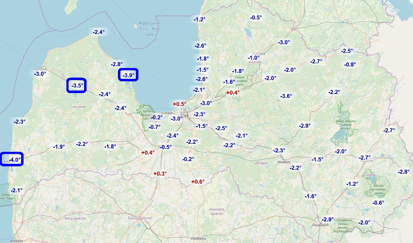 Во-вторых, объяснение простое - Питер попадает уже который раз в марте под ЮМП (южный перенос). При ветрах с Ю, ЮВ влияния замерзших водоемов нет. Предполагаю, что в Лиепае нередко дуют ветра западных румбов и холодное море тут работает сильнее, чем широта.