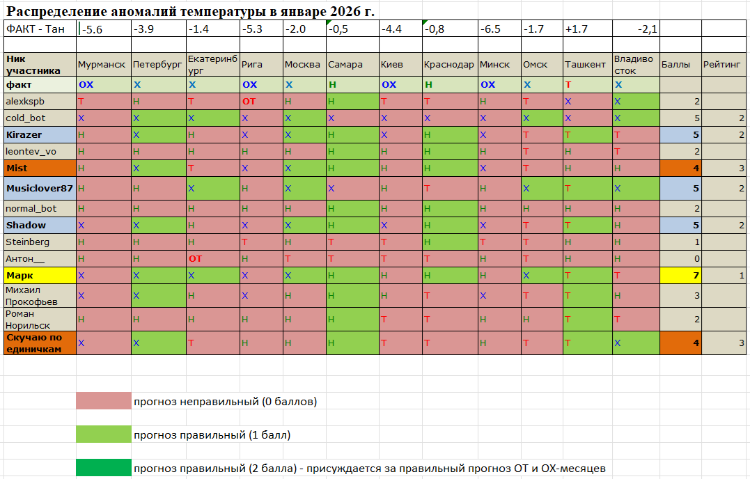 Цитата: Shadow от 29 января 2026, 11:05:33Но в стратегическрм плане я доволен- если в столице случится холодный январь, окажется верным мой отфонарный прогноз от начала прошлого года, что в Москве не будет холодных месяцев до января 2026. :)