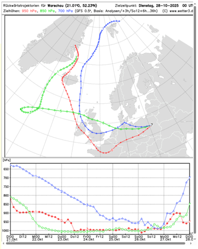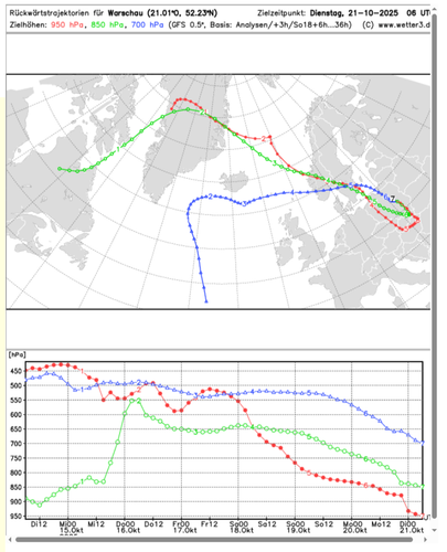 📈Во второй половине недели погода станет более теплой и влажной: гребень антициклона окажется вытеснен многоцентровой циклонической депрессией из Атлантики, в южный сектор которой к нам придут прогретые воздушные массы из южных широт. В четверг и пятницу, предварительно, ожидается пик потепления с ночными температурами не ниже +5...+7℃, а днем до вполне комфортных для конца октября +13...+15℃. Вряд ли обойдется без дождей при прохождении атмосферных фронтов.