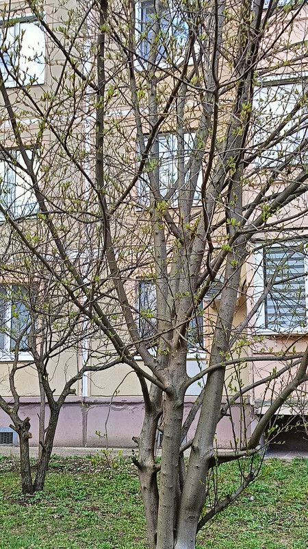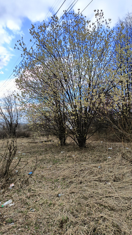 Добрый вечер! Вегетация у вас, ессно, мощная, и уже чувстсвуется весна. Вот на первых фото видно как травка пробивается, чудесно. Ещё отмечу что потужный куст - это черёмуха. Если вникнуть глубже в тему, сможете на глаз определять почти. Правда и я местами путаюсь, дуб от граба и бука не отличу.