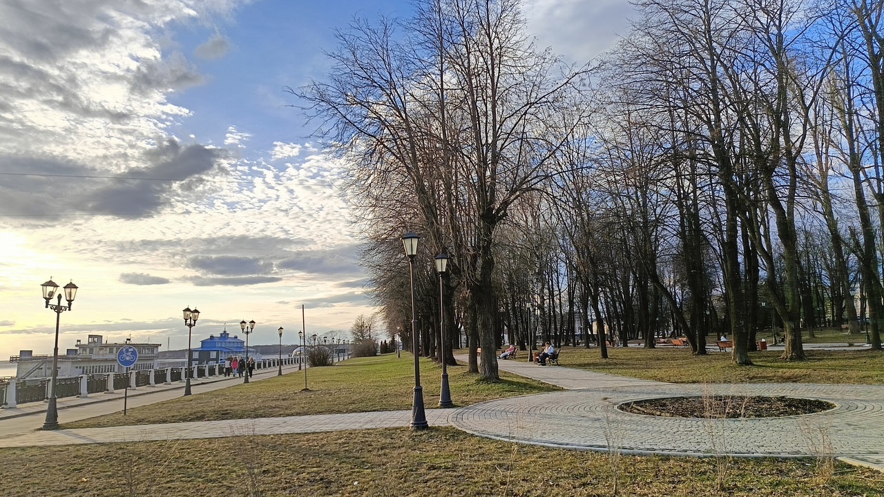 Парк возле Волги. Кстати, запланированный лесоповал в нём ещё не начался, всё целое. Тот случай, когда радуешься, что коммунальщики балдеют, авось забудут.