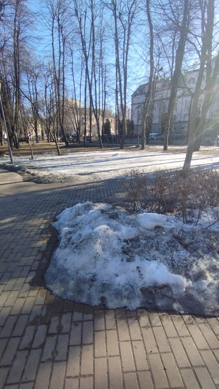 В затемнённых местах и углублениях, особенно с северной стороны многоэтажек, есть такие места, где кучи снегольда и при +10 он всё ещё выглядел замёрзшим. Почти без намёка на таяние. И это в городе.