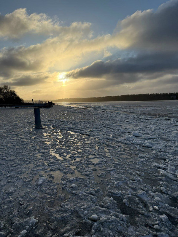 Кроме того, -10 и предшествовавшие -5...-8 - это уже морозец посерьёзнее, поэтому к текущему моменту замёрзли не только пруд в Поддубном и Марьинский пруд в Костроме, но и прибрежные воды Волги тоже покрылись нестабильным, но льдом: