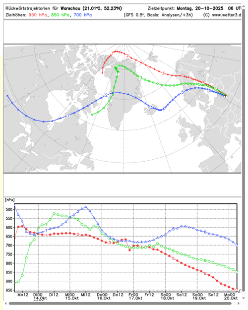 🌀В первые дни грядущей недели погоду определит гребень антициклона: установится сухая и солнечная погода, отлично подходящая для наслаждения пейзажами разгара золотой осени в регионе! Северная воздушная масса, затянутая в конце этой недели, будет постепенно сменяться на южную, "подталкиваемую" к нам выходящими из Атлантики циклонами (рис.2). В условиях ночного выхолаживания, до вторника большую часть региона ждут заморозки, сопровождаемые характерными туманами/дымкой, которые будут рассеиваться днем под действием солнечных лучей. Утром и вечером будет весьма прохладно, днем - умеренно. Со вторника станет теплее: дневные температуры "перешагнут" отметку +10℃. В общем, вполне хорошая октябрьская погода