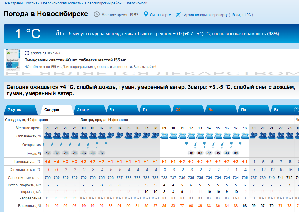 До 0 С поднялась температура и в Новосибирске. Также модели ждут оттепели на многих станциях юга Западной Сибири и 11 февраля.