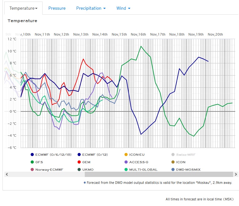 то все модели уже достигли консенсуса по понижению температуры ниже нуля в период с 11 по 14 ноября.