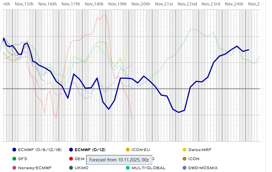 Вероятность метеозимы с 16 ноября оценил бы в 75 %. Она у всех ГДМ за исключением GFS пока.