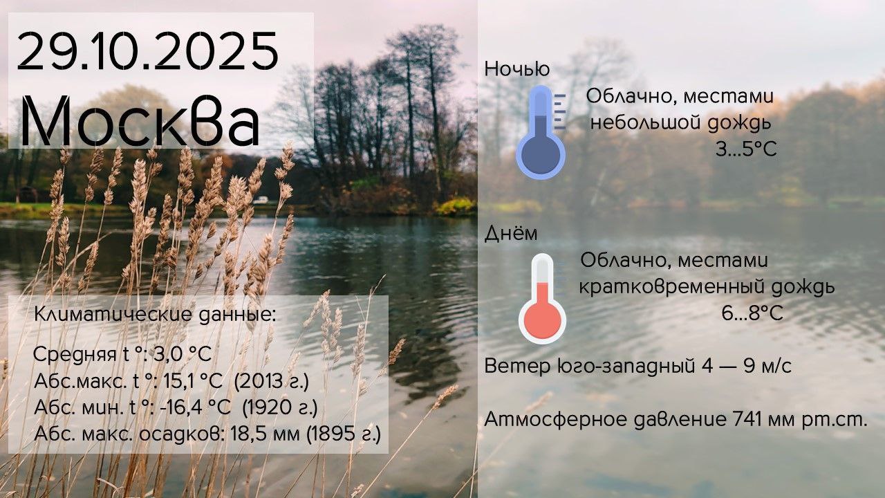 Ночь вышла, можно сказать, даже очень теплой по меркам самого конца октября - на ВДНХ Тмин +6.1, по области минималка повсеместно выше +5. Но днём суточный ход будет более скудным, чем вчера, в отличие от вчерашнего дня, прояснения крайне маловероятны.
