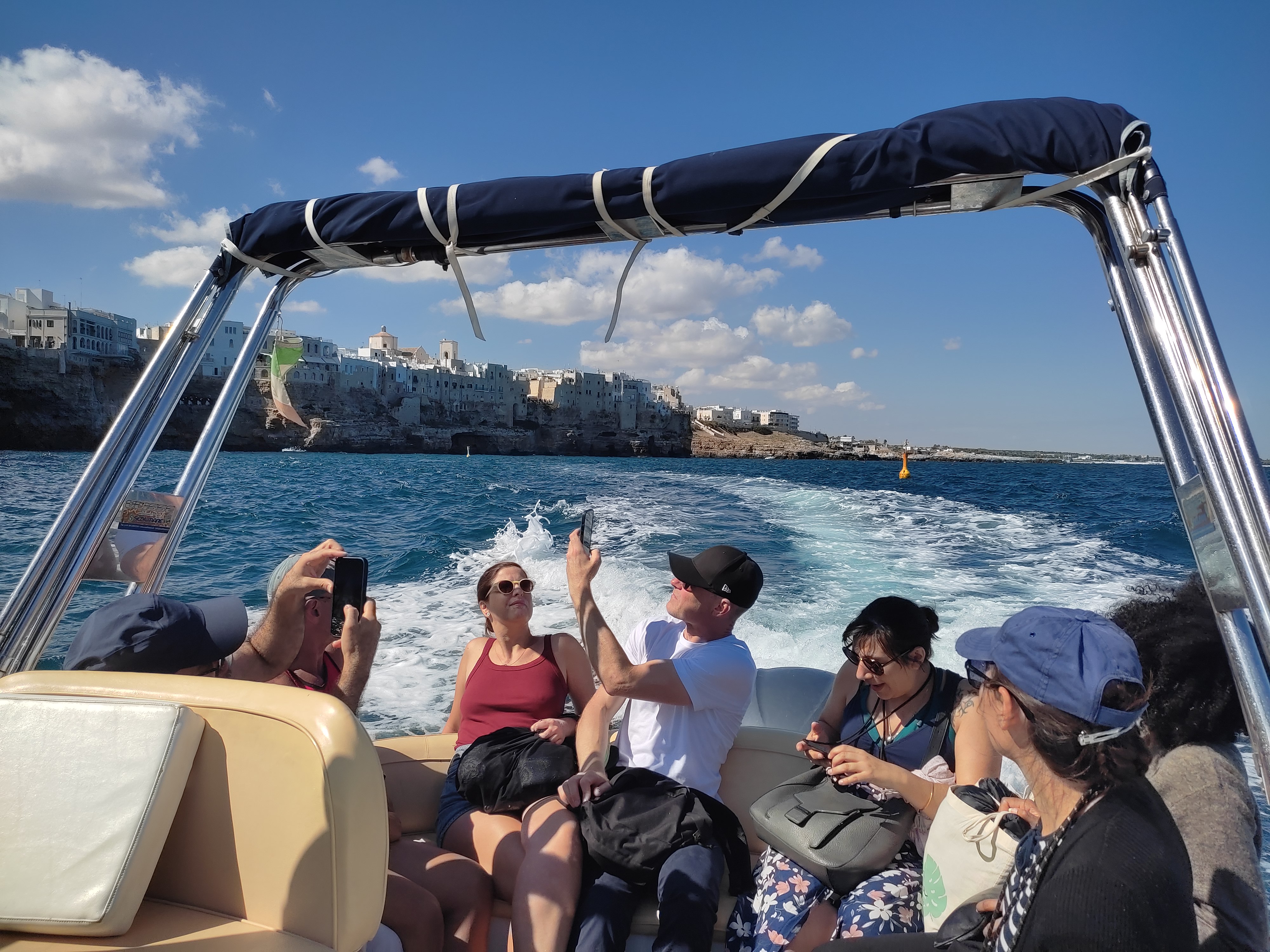 Сегодня бьл на туре с яхтой в море у Полиняно а Маре, там морские пещерь в скалах и входили в миг, очень интересно. Туристов полно и классная погода.