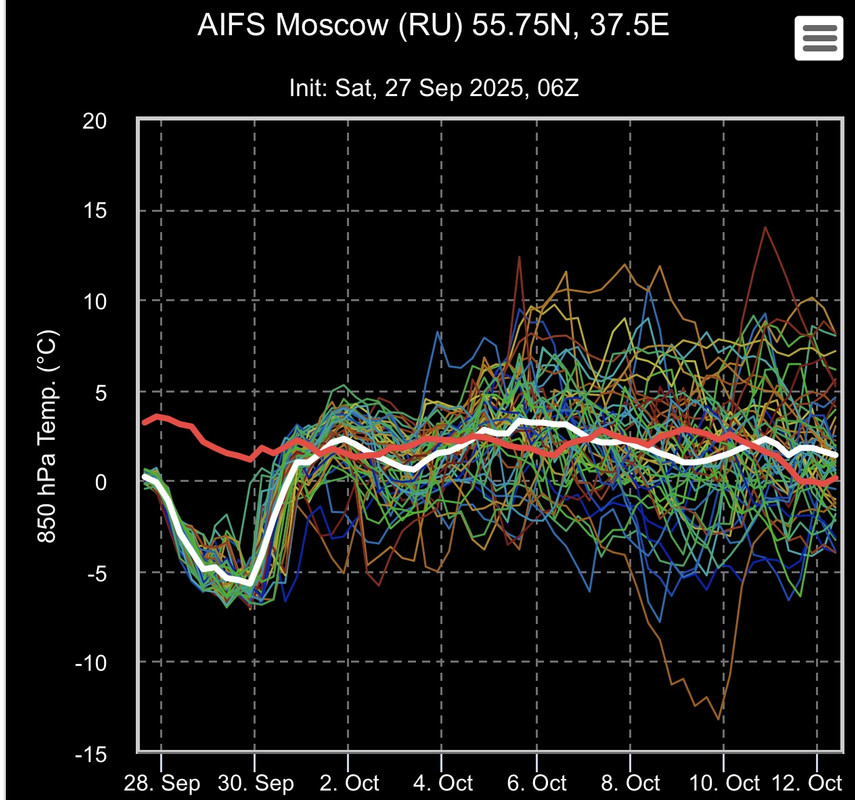 Костян оценит. Ровно с 1 октября температура возвращается в норму и будет ей следовать до скончания времён. :) Пока по ансамблям так. То есть, разумнее всего сейчас ждать нормальный октябрь. Ни тепла, ни холода не видно.
