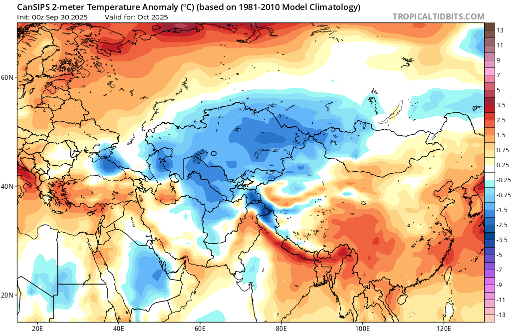 И на этой неделе, и до скончания времён Лиепайский район будет холоднее восточной Латвии, особенно ЮВ. И это уже 9-ый октябрь подряд! https://charts.ecmwf.int/products/extended-anomaly-2t?base_time=202509290000&projection=opencharts_europe&valid_time=202510060000