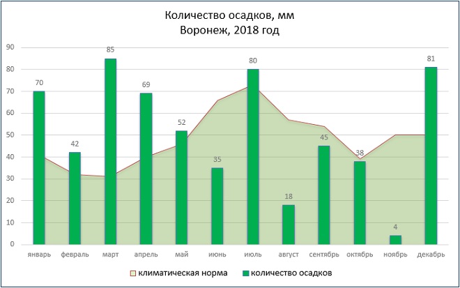 Жёсткая засуха была в ноябре-2018,а в октябре в Воронеже выпало 37 мм. А в Москве 56.