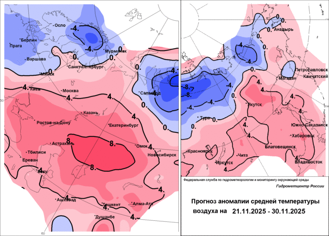 Прогноз отклонений от Тср на третью декаду ноября от ГМЦ
