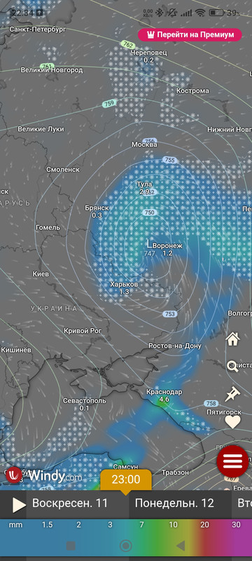 Кстати, траектория похожа, ЮЦ забирает в тёплый сектор Черноземье, фронт тянется с ЮЗ на СВ.