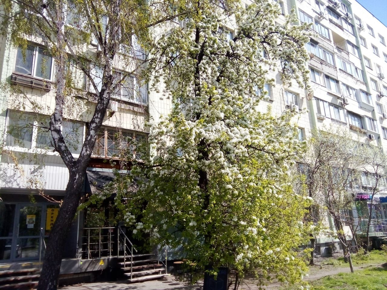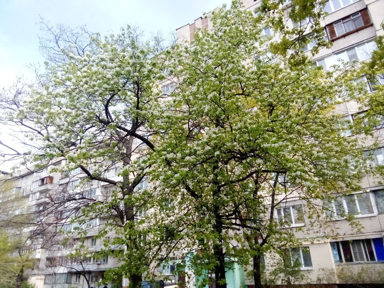 А на КПИ полностью расцвела груша, аж слилась с цветом фасада..
