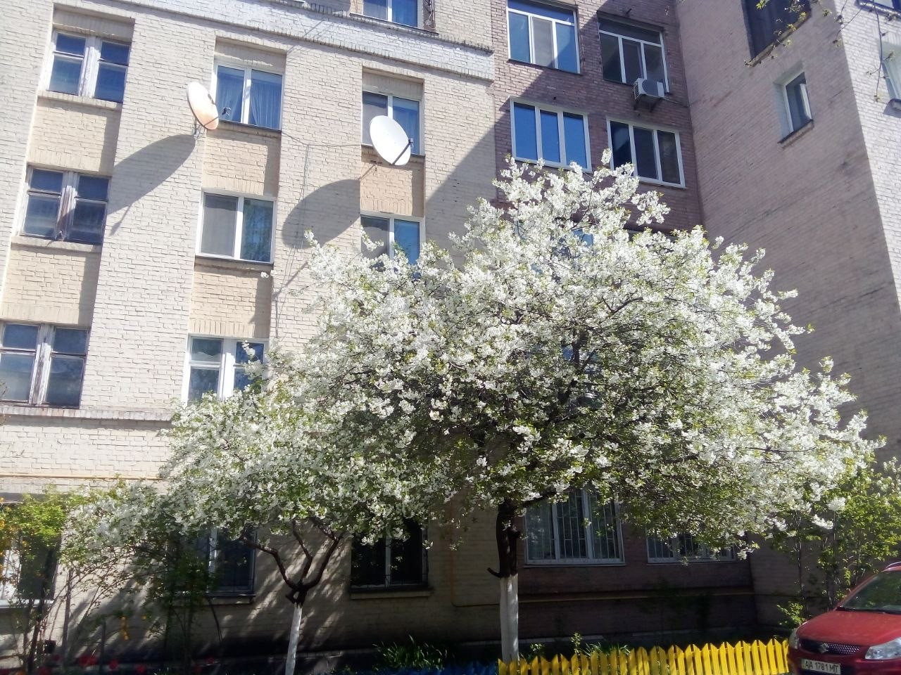 Выходим со двора, цветёт вишня