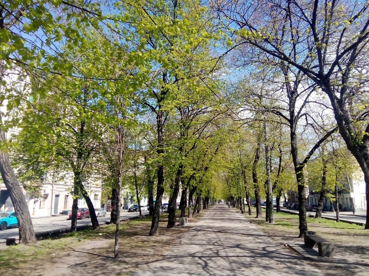Типичная картина этого времени. Слева каштан, справа на заднем плане тоже каштан, а в остальном всякие тополя