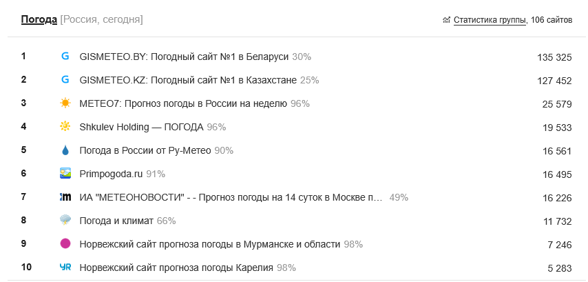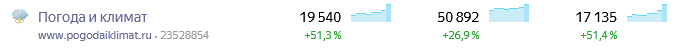 Посмотрел статистику и вопросов осталось больше, чем ответов, потому что невозможно понять, что послужило причиной. Почему-то люди именно сегодня резко стали интересоваться погодой. Значительный и необъяснимый прирост переходов из поисковых систем. Можно было бы объяснить это какими-то изменениями в выдаче поисковой системы, но прикол в том, что переходы резко выросли сразу и в Яндекс, и в Google. Аномальной погодой в каком-то из регионов тоже не объяснить: переходы возросли как из России, так из Беларуси, так и из Казахстана.