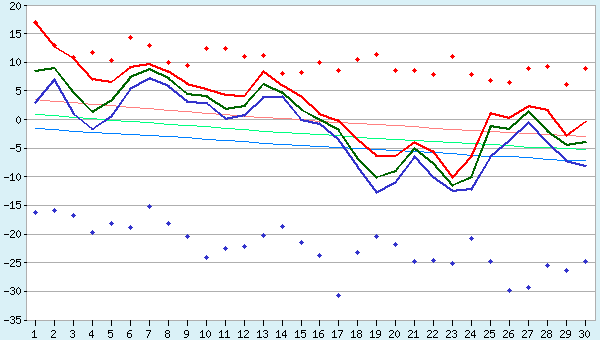 | 30 | -8.0 | -3.8 | -0.3 | +1.5 | 2.5 |