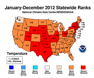 2012 год стал самым теплым в истории США